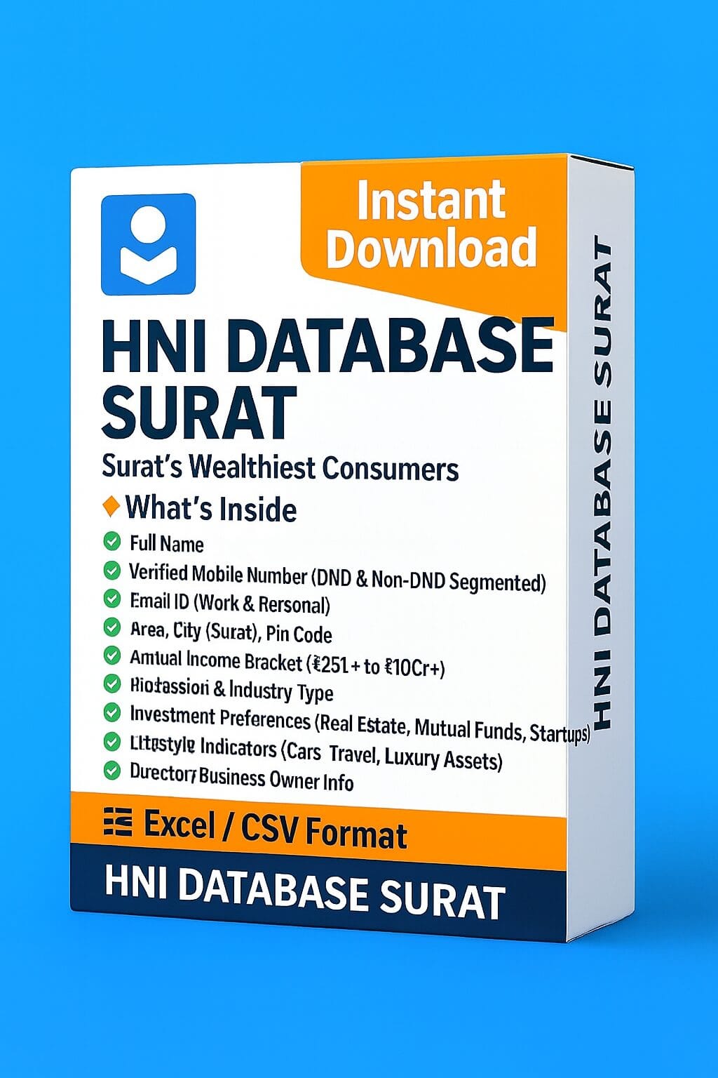 With Surat being one of India’s fastest-growing business hubs, especially in textiles, diamonds, and real estate, HNI Database Surat is your ultimate gateway to accessing high-income clients ready to invest in your products or services. Whether you’re selling villas, luxury cars, insurance plans, or elite health programs, our product offers direct access to qualified, ready-to-convert prospects.